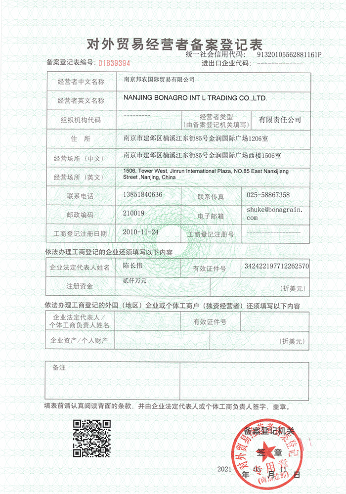 Copyright © 2017 南京邦農(nóng)國(guó)際貿(mào)易有限公司 版權(quán)所有 備案號(hào):蘇ICP備17044592號(hào)-1   蘇公網(wǎng)安備32010502010699     技術(shù)支持:雨澤網(wǎng)絡(luò)