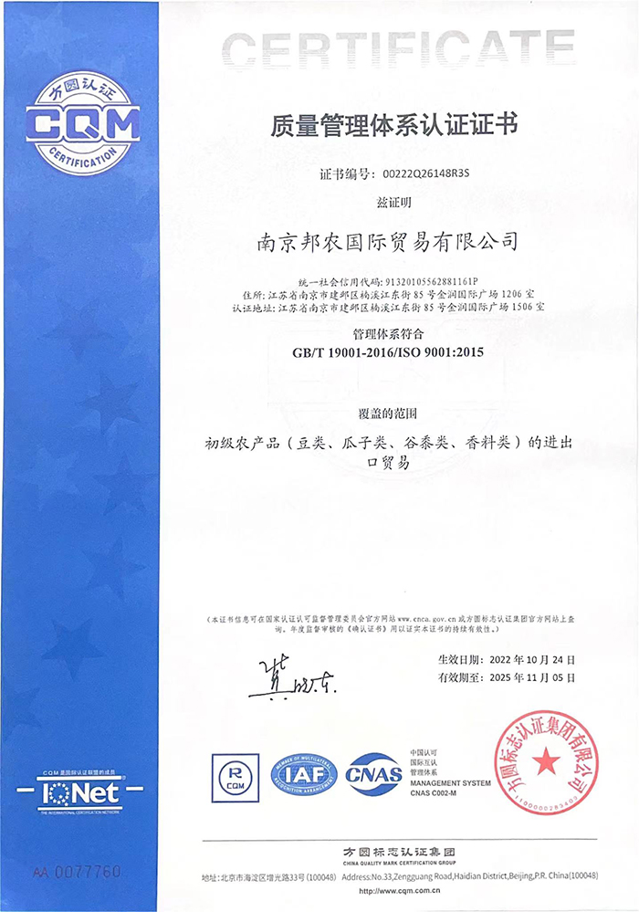 南京邦農(nóng)國(guó)際貿(mào)易有限公司成立于2010年,注冊(cè)資本1000萬(wàn),是一家以農(nóng)產(chǎn)品進(jìn)出口為主的加工貿(mào)易型企業(yè),公司本部坐落于南京市繁華的河西CBD中心。擁有近二十年農(nóng)產(chǎn)品國(guó)際貿(mào)易經(jīng)驗(yàn)的經(jīng)理人團(tuán)隊(duì),且經(jīng)理人團(tuán)隊(duì)擁有多年大型食品集團(tuán)企業(yè)工作經(jīng)歷與管理經(jīng)驗(yàn)。