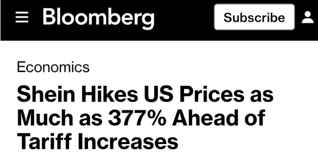 據(jù)悉,Shein將美國市場部分商品價格最高上調(diào)至377%。