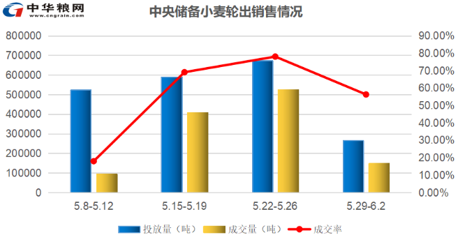 2、政策性小麥銷售輪出成交率大幅提升,價格開始上漲