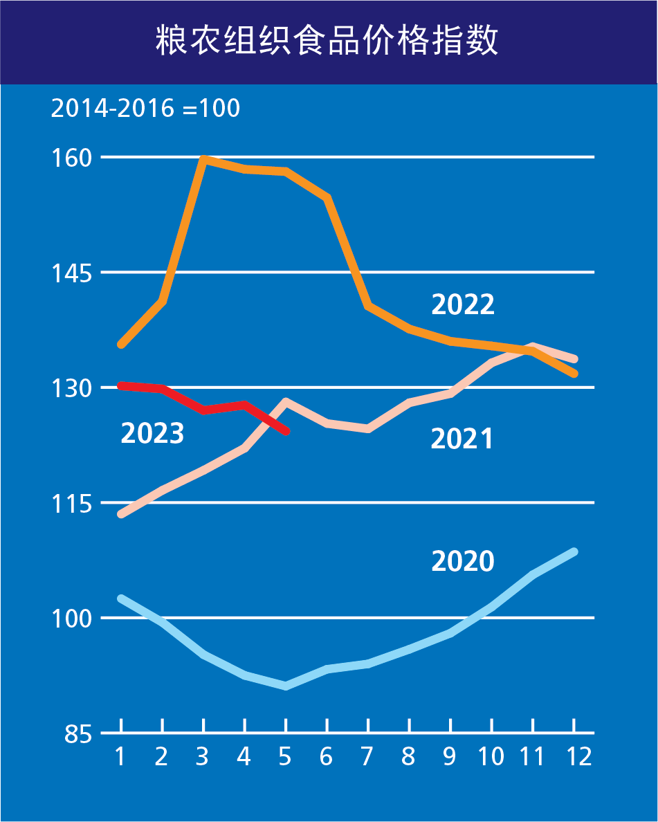 2023年6月2日,羅馬 — 聯(lián)合國糧食及農(nóng)業(yè)組織(糧農(nóng)組織)今天發(fā)布最新報(bào)告顯示,受多種谷物、植物油及奶制品報(bào)價(jià)大幅下跌影響,國際食品價(jià)格指數(shù)5月下行。